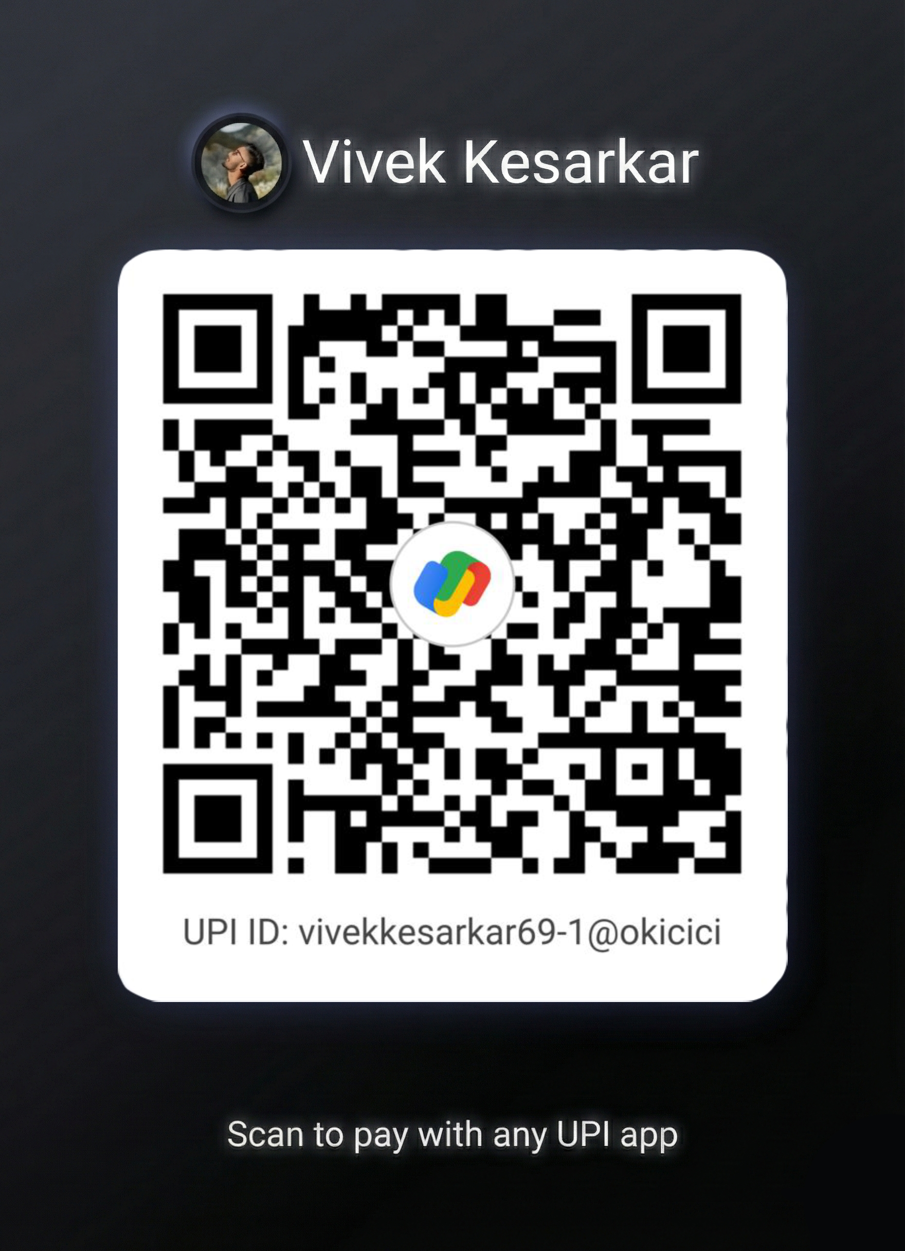 UPI ID: vivekkesarkar69-1@okicici